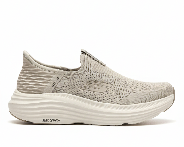 These innovative sneakers combine advanced comfort with effortless style. The shoe features a beige knit upper that is designed for a hands-free fit, allowing you to slip them on and off easily. The thick, responsive Max Cushioning midsole provides exceptional comfort and shock absorption for all-day wear. With a clean, neutral color scheme and a sleek, modern design, these are a great choice for walking, travel, or everyday comfort.
