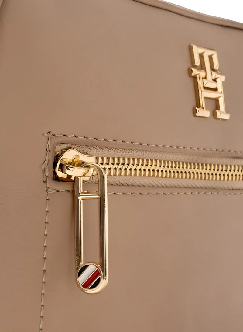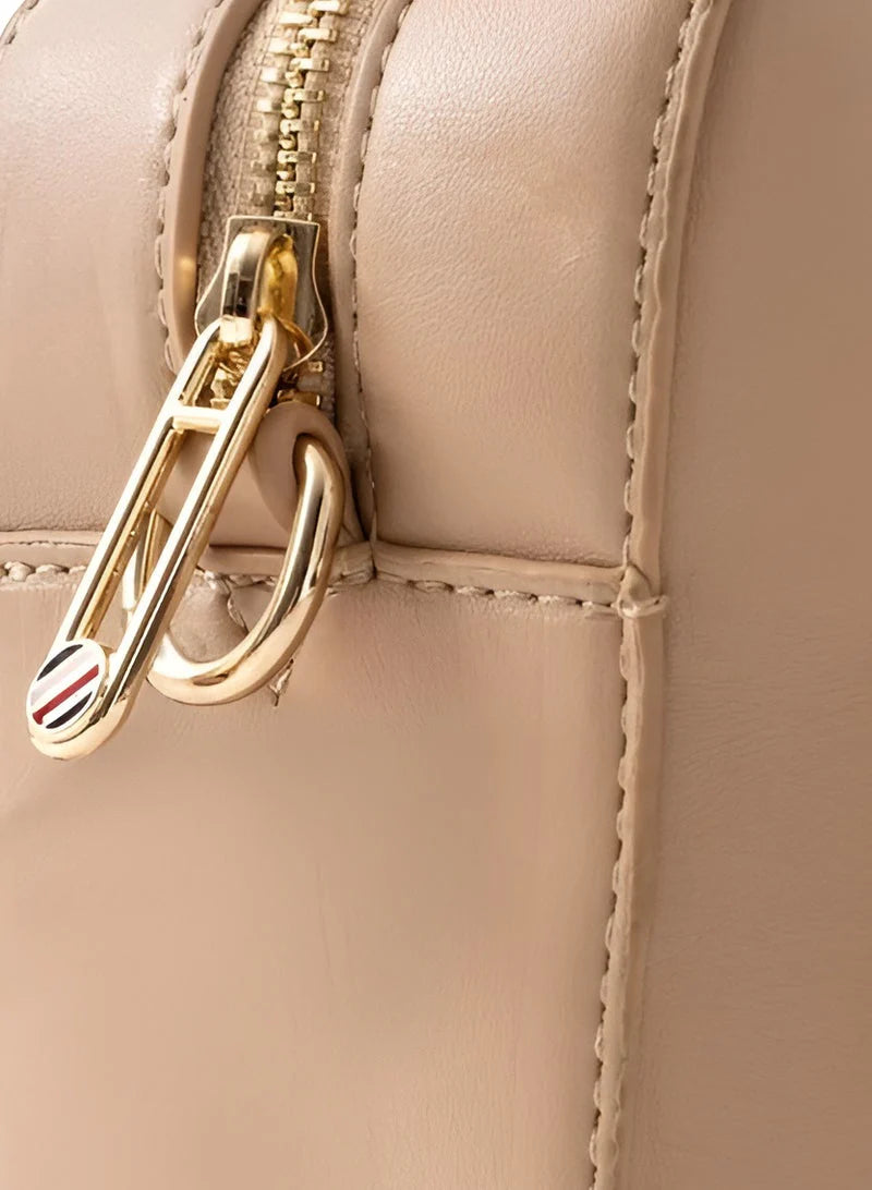 The Tommy Hilfiger Women's Camera Cross body Bag is a stylish, versatile, and compact accessory that blends fashion and practicality. Designed for the modern woman, this sleek cross body bag is crafted from high-quality faux leather with a smooth finish, making it both durable and elegant. The neutral beige color gives it a sophisticated, timeless appeal, while the gold-tone hardware and the iconic TH monogram logo add a touch of luxury.